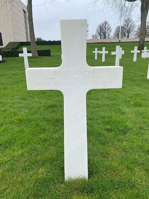 Pfc Bert Machi was a miner before he enlisted in Huntington, West Virginia on 9 April 1941.Source of information: Peter Schouteten, www.abmc.gov, www.wwiimemorial.com, www.archives.gov – WWII Enlistment Record, www.ancestry.com - Headstone and Interment Record / U.S. WWII Draft Cards Young Men