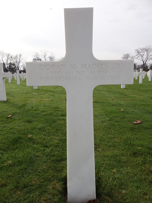 Pfc Doran M. Maines Jr. enlisted in New Cumberland, Pennsylvania on 23 February 1944.Source of information: André Koch, www.abmc.gov, www.wwiimemorial.com, www.archives.gov – WWII Enlistment Record, www.ancestry.com - 1930/1940 Census / Headstone and Interment Records / U.S. WWII Draft Cards Young Men 1940-1947 / Pennsylvania Veteran Compensation Application Files WWII 1950-1966, https://36th-id.frb.io/, 141aar-December-1944-to-end.pdf