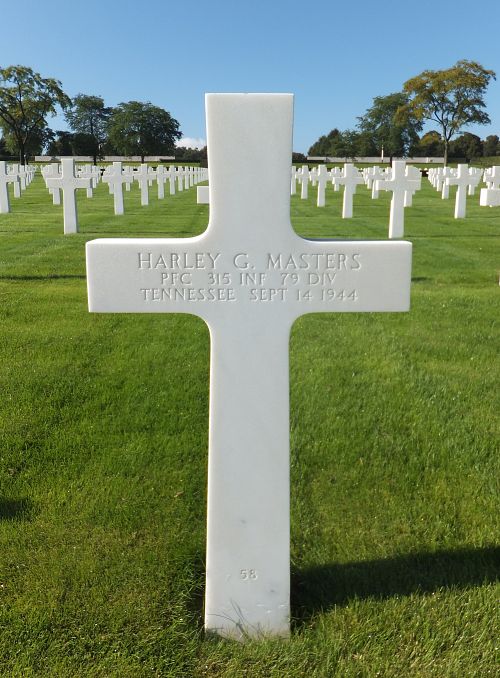 Pfc Harley G. Masters was employed at the Southern Potteries Inc. before he enlisted at Fort Oglethorpe, Georgia on 3 June 1942.He was killed by small arms fire in his chest and loin.
