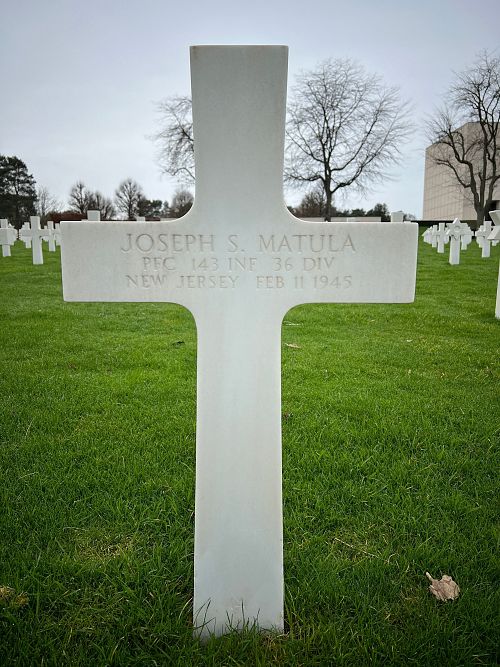 Pfc Joseph S. Matula was a kitchen worker at the Billie Burke restaurant on West Broadway before he enlisted in Trenton, New Jersey on 26 August 1941.His brother Frank is buried next to him.