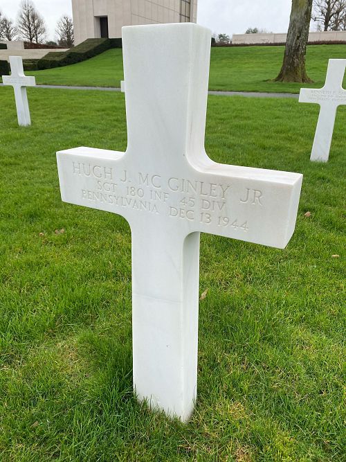 Sgt Hugh J. McGinley Jr. attended high school for 4 years before he enlisted in Allentown, Pennsylvania on 28 May 1943.He was first buried at the Temporary American Military Cemetery in Hochfelden, France.