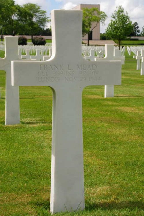 1st Lt Frank L. Mead was a clerk general office before he enlisted in Chicago, Illinois on 15 April 1942.He was first buried at the Temporary American Military Cemetery in Limey, France.