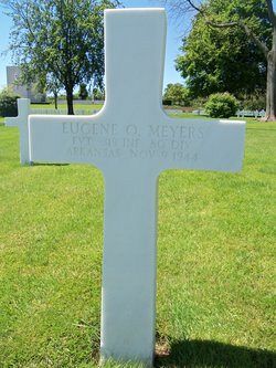 Pvt Eugene O. Meyers' mother died in 1932 and so he was raised by his grandparents. He was employed at the Ralph Hill Dairy in Bryant, Saline County before he enlisted in December 1942.He was killed by an artillery shell fragment at his forehead.