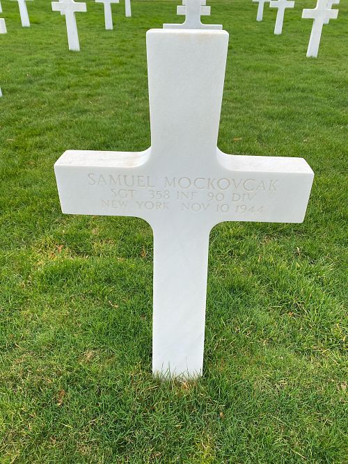 Sgt Samuel Mockovcak was a machinist before he volunteered for the Army of the United States in New York City, New York on 19 October 1942.He was first buried at the Temporary American Military Cemetery in Limey, France.