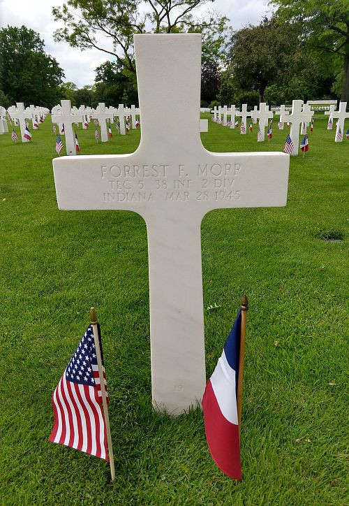 T/5 Forrest F. Morr attended 4 years of high school. He worked as a barber, beautician and manicurist before he enlisted at Fort Benjamin Harrison in Indiana on 10 June 1941.He was married to Mary F. Morr on 21 May 1943 during the time he was in Camp McCoy.