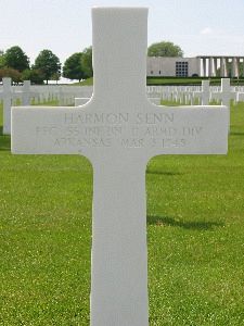 Pfc Harmon Senn enlisted in October 1940. He received training Fort Riley, Junction City, Kansas, Fort Knox, Kentucky, Camp Polk, Louisiana and Camp Cook, California.He was driving a jeep to retrieve injured men when he was hit by a mortar fragment in the neck and bled to death.