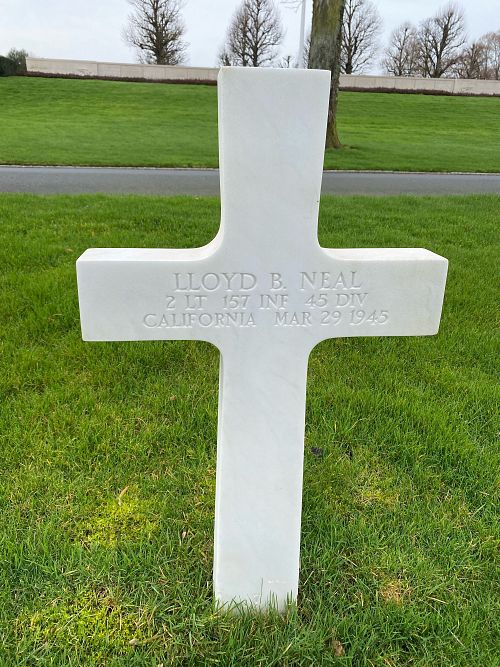 2nd Lt Lloyd B. Neal attended high school for 4 years before he enlisted in Los Angeles, California on 24 January 1941.Source of information: Peter Schouteten, www.abmc.gov, www.wwiimemorial.com, www.archives.gov – WWII Enlistment Record, www.ancestry.com - Headstone and Interment Record / Trombley Petruso Family Tree, http://www.45thdivision.org