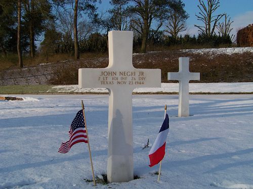 2nd Lt John Negri Jr. attended a Post-graduate before he joined the U.S. Army Reserve at Fort Sam Houston, Texas on 9 February 1943.He was first buried at the Temporary American Military Cemetery in Limey, France.