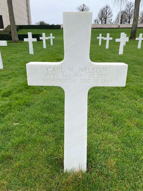 Pvt Carl W. Nelson enlisted in Portland, Oregon on 17 January 1944.He was first buried at the Temporary American Military Cemetery in Limey, France.