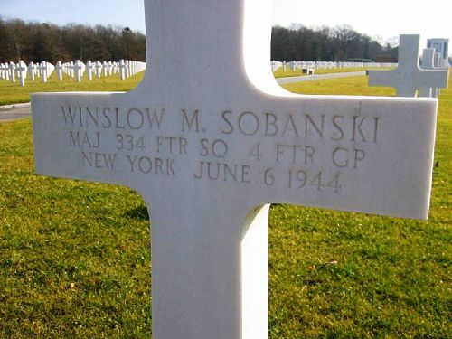 He was awarded the Distinguished Flying Cross four times. The citation of the first award reads: For extraordinary achievement and heroism in aerial combat. Lt. Sobanski has accomplished 100 fighter combat missions, or the equivalent thereof, and destroyed five enemy airplanes over enemy occupied continental Europe. The skillful and zealous manner in which Lt. Sobanski has sought out the enemy and engaged him in aerial combat, his devotion to duty and his courage under all conditions serve as an inspiration to his fellow fliers.