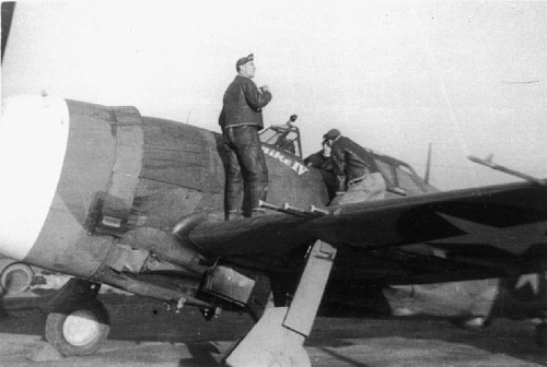 Major Sobanski asked Lt. Steppe over the radio to check his aircraft after hitting some wires while strafing a train. Last heard radio report was Lt. Steppe saying "watch those behind you White Leader."Major Sobanski has had an extremely colorful career. At the beginning of the war he was arrested in Poland since he was the American-born son of a Polish army colonel. He managed to escape to the United States. After reaching his country he joined the R.C.A.F. where he became a fighter pilot and eventually got to England and was transferred to the American Air Forces. Probaby his greatest day was 21 May 1944, when it was reported that he avenged the sufferings of his native Poland by leading his Mustang squadron beyond Berlin, destroying six enemy planes, wrecking two warehouses, blowing up an ammunition dump and nine locomotives, one factory, three military trucks, two tugboats, a barge and a radio station. At that date his squadron was in top place, credited with 208 German kills.