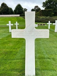 Pvt Lawrence J. Nierengarten enlisted on 10 April 1944 and was sent overseas in October 1944.He was first buried at the Temporary American Military Cemetery in Hochfelden, France.