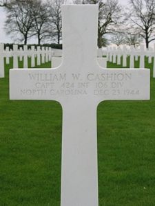 Capt William W. Cashion graduated from Davidson College in 1932.He was sent overseas in October 1944. He was taken prisoner on 17 December 1944 in Winterspelt and died in Stalag XII-A.