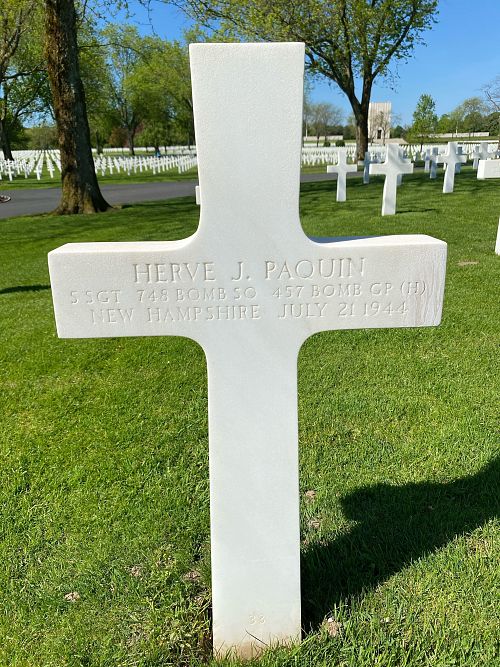 S/Sgt Herve J. Paquin was employed at a shoe factory before he enlisted in Manchester, New Hampshire on 5 January 1943.Over the target the airplane was hit by flak, causing it to crash near Schweinfurt.