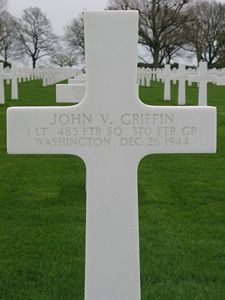John Griffin joined the Air Corps of the U.S. Army Reserve in Seattle, Washington on 14 September 1942.Statement of 2nd Lt Richard R Booth, who flew in the same mission: "On 26 December, 1944 on a D/3 Mission to Hauffalize, Belgium I was flying No 2 position, Zenith Red flight. I went down on my bomb run, was hit by flak, pulled up and at no time saw what happened to Lt. Griffin and Lt. Berry, our No 3 and 4 men."