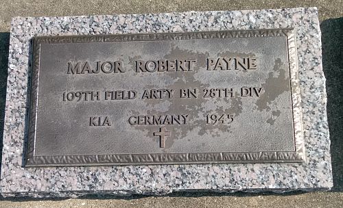 Maj Robert C. Payne graduated from Purdue University and was employed as a farm agronomist.He was taken prisoner on 21 December 1944 and was held in Stalag XII-A in Limburg an der Lahn, Germany. When the Russian forces advanced eastwards, this camp was evacuated and the prisoners were transported by freight trains to Stalag IX-B in Bad Orb, Germany.