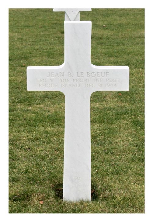 T/5 Jean B. Le Boeuf enlisted in Providence, Rhode Island on 1 September 1942He is remembered at Saint James Cemetery in Lincoln, Rhode Island.