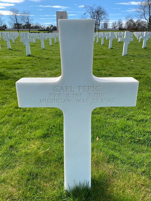 Pvt Carl Peric immigrated in 1929 from Italy. He was a leather worker before he enlisted.At the time of his death, the 11th Infantry Regiment was engaged in the Rhine River bridgehead in the vicinity of Nierstein – Oppenheim, Germany.