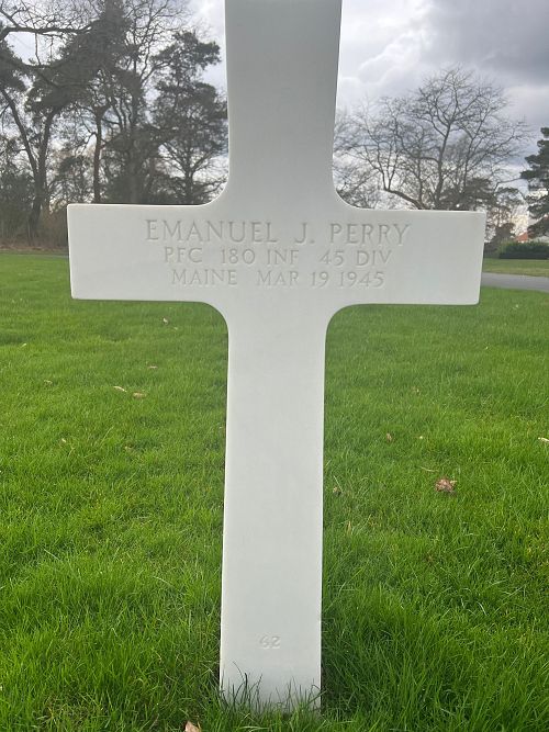 Pfc Emanuel J. Perry enlisted in Portland, Maine on 22 December 1942.Source of information: Peter Schouteten, www.abmc.gov, www.wwiimemorial.com, www.archives.gov - WWII Enlistment Record, www.ancestry.com - Headstone and Interment Record / 1940 Census, http://www.45thdivision.org