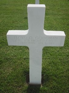 Cpl Floyd O. Goodman attended Washington Junior High School and Muir Tech High School and was employed at the Douglas Aircraft plant in Long Beach.He volunteered for the Army of the United States in Los Angeles on 22 November 1942. He was sent overseas in December 1943, a few days after his daughter was born and he never saw.