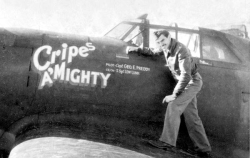 On Christmas Day 1944, his plane was hit by American gunfire. The Mustang fighter ace, crashed and died on the Belgian front. Preddy, who had 32½ planes to his credit, was killed instantly. A fusillade of machinegun fire which an American anti-aircraft battery had thrown up to trap a German fighter wrecked the colorful flyer’s P-51 and sent it flaming and spinning to the ground. It was a tragic ending to a spectacular dogfight which had held the ground troops spellbound as they watched Preddy kill off one ME-109, get a second, and then take off after a FW-190 which ironically escaped both his guns and the curtain of fire thrown in the skies by ground crews.