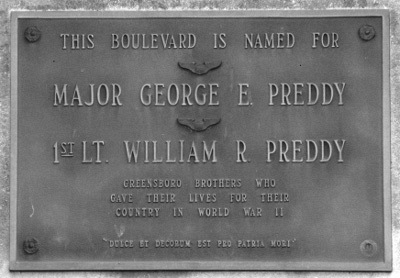 Preddy Boulevard, Greensboro, North Carolina, is named after and dedicated to both brothers.