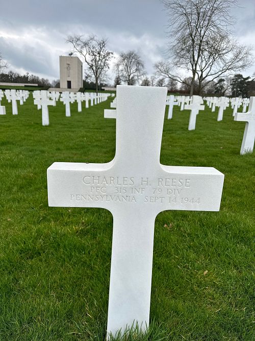 Pfc Charles H. Reese was employed by Jones & Laughlin Steel Corporation before he enlisted in Pittsburgh, Pennsylvania on 17 March 1943.He was overseas for only three months when he was killed by artillery shell fragments to his leg.