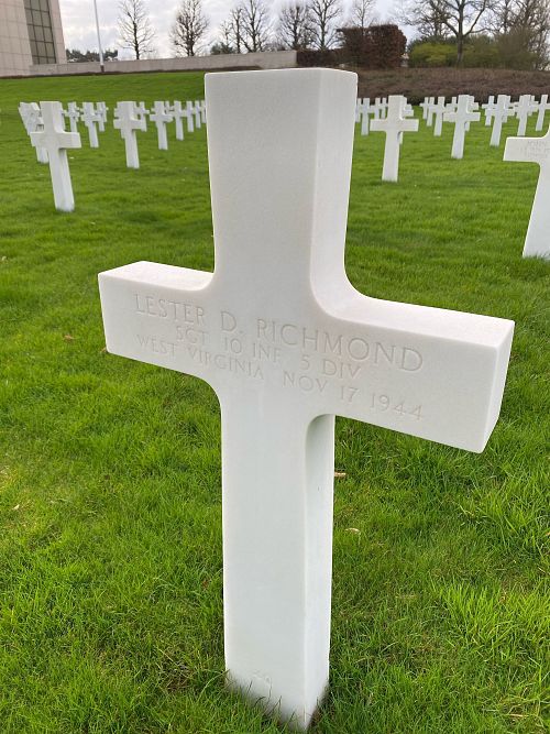 Sgt Lester D. Richmond was a welder before he enlisted in Clarksburg, West Virginia on 12 May 1943.At the time of his death, the 10th Infantry Regiment was engaged in the vicinity of Courcelles-sur-Nied, France.