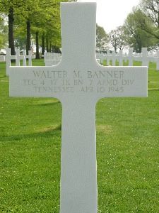 T/4 Walter M. Banner attended Lonsdale School in Knoxville, Tennessee and was employed in an extract plant before he joined the Regular Army at Fort McPherson, Georgia on 19 September 1940.According to an article in the Knoxville Journal T/4 Banner was awarded the Bronze Star Medal for his work as a truck driver in France, Belgium, Holland and Germany. However, his MOS code was 736, which means he must have been a tank crewman. Therefore it can be assumed that he was awarded the medal for his duties as a member of a tank crew.