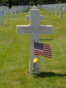 On 18 December Donald A. Ross and his crew pushed through the German border around Lembach, a hilly sector of the North Lower Vosges Mountain area. As they advanced, German artillery hit Ross’ tank. Army medical personnel rushed Ross and his tank crew to the hospital. Ross succumbed to his wounds that same day.