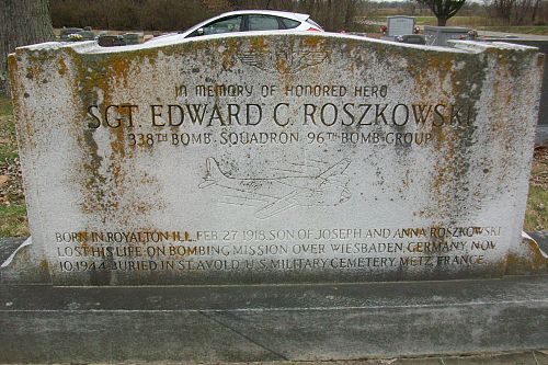 Sgt Edward Roszkowski was a salesman before he volunteered for the Army of the United States in Peoria, Illinois on 25 February 1942.He married his wife in Belleville, St. Clair County, Illinois on 4 December 1943.