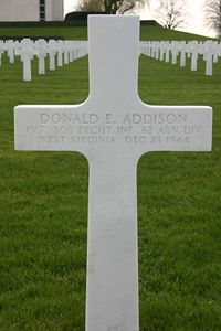 Pvt Donald E. Addison was a miner.He enlisted in Huntington, West Virginia on 22 June 1943.