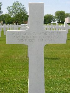 Private Adkins enlisted in August 1941, and had been overseas since December 1944.Due to the slower progress of the 90th Division, the left flank was exposed and enemy snipers infiltrates and inflicted some casualties.
