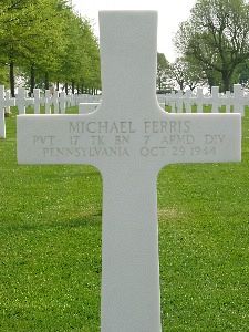 Michael Ferris graduated from Coughlin High School with the class of 1941. He received training at various camps in the US before going overseas in May. He saw combat service in France, Belgium and Holland.Source of information: Peter Schouteten, Astrid van Erp, www.wwiimemorial.com, www.archives.gov, www.newspapers.com - The Wilkes-Barre Record, http://www.7tharmddiv.org/index.htm, www.ancestry.com - Veteran Compensation Application File, www.newspapers.com - Wilkes-Barre Times Leader