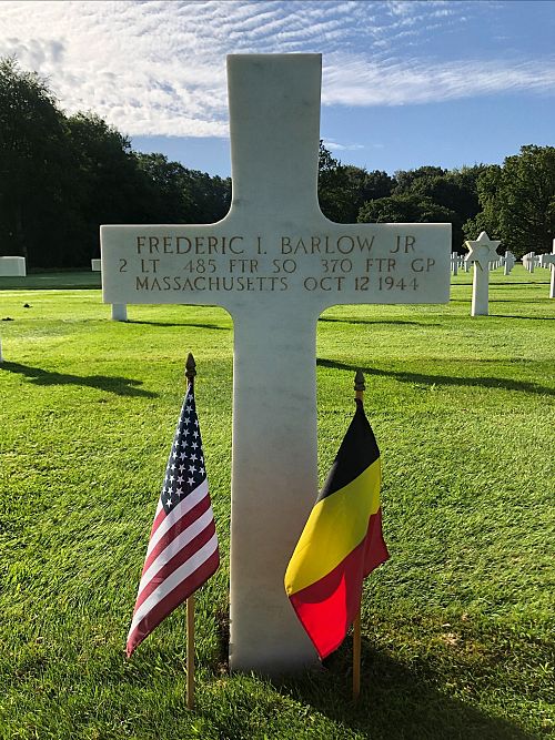 Frederic Barlow volunteered for the Air Corps of the Army of the United States at Westover Field, Massachusetts on 26 June 1942.Statement of 2nd Lt Francis E. Miron, who flew in the same mission: "Lt Barlow led our flight on two successive passes at a train in a heavily defended area behind the lines. After the first pass at the train, Lt Barlow called on the radio and said we would go down again and direct our fire on an oil tank car on the same train. He had fired and was in a shallow climb up off the target when fire broke out of his left main tank. The nose of his ship went up immediately and went into a split "s" to the left at an altidude of approximately 800 feet. I last saw his ship burning on the ground and no sign that a parachute had been used."