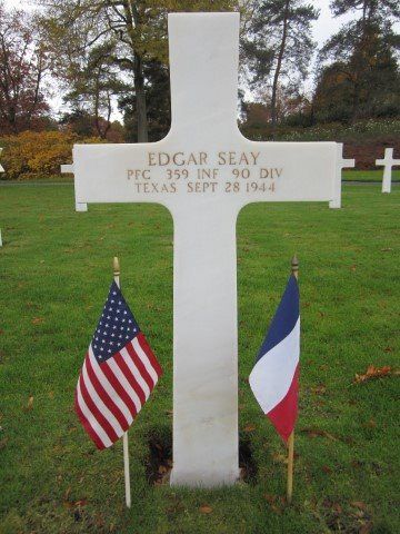 Pfc Edgar Seay enlisted in Dallas, Texas on 5 November 1942.He was first buried at the Temporary American Military Cemetery in Limey, France.