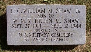 Pfc William M. Shaw Jr. graduated from Fayetteville High School and attended Davidson College for one year.He worked as a bookkeeper in a bank before he enlisted.