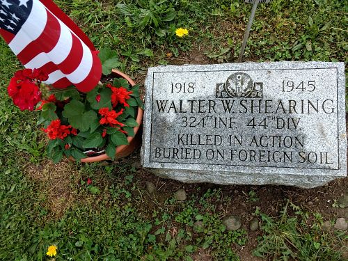T/Sgt Walter W. Shearing was a fireman before he enlisted in March 1942. He was sent overseas in September 1944.He is also remembered at the Maple Grove Cemetery in Gainesville, Wyoming County, New York.