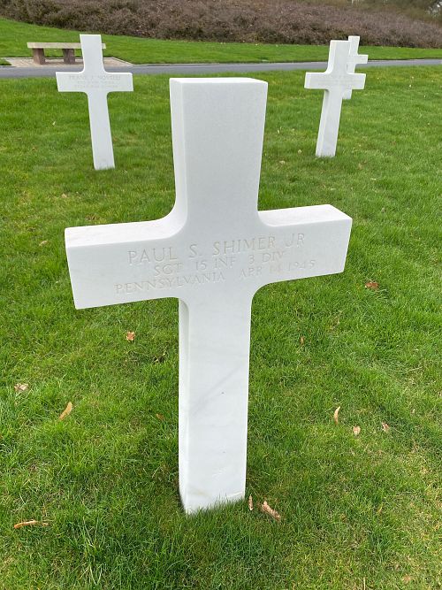 Sgt Paul S. Shimer attended high school for four years and was a retail manager employed by the J.C. Penny Co. Store.He enlisted at Fort George G. Meade, Maryland on 19 April 1944 and trained at Camp Walter in Texas. He was sent overseas in June 1944.