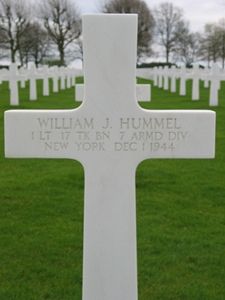 1st Lt William J. Hummel was awarded the Bronze Star for distinguishing himself by heroic service in connection with military operations against an enemy in France on 17 September 1944.He was wounded when his tank was hit by a German anti-tank gun shell a few seconds after his crew had knocked out a German Tiger tank.