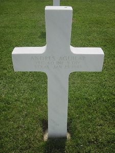 Pfc Andres Aguiler enlisted at Fort Bliss, Texas on 29 January 1944.Source of information: Peter Schouteten, Carla Mans, WWIIMemorial.com, Archives.gov - WWII Enlistment Record, www.ancestry.com - U.S., Headstone and Interment Records for U.S. Military Cemeteries on Foreign Soil / 1930/1940 census - U.S. WWII Draft Cards Young Men