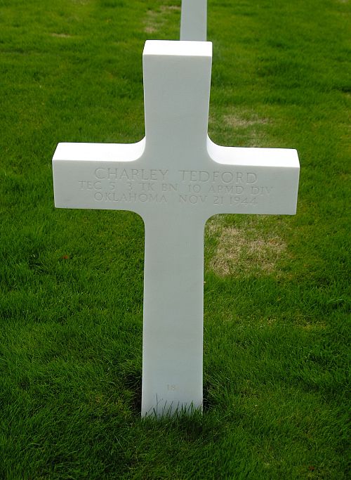 T/5 Charley Tedford worked on a farm before he enlisted in Tulsa, Oklahoma on 18 November 1942.He was killed by artillery shell fragments.