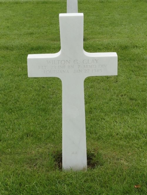 Lt. Wilton G. Clay completed his studies in chemical engineering at Louisiana State University.Source of information: Peter Schouteten, Terry Hirsch, www.wwiimemorial.com, www.7tharmddiv.org, The Daily Review - 29 August 2014, Terry A. Mayon Sr. ~ Fallen Warriors Memorial Committee, Morgan City, Louisiana