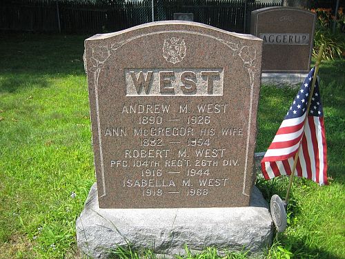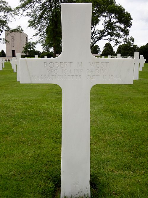 Pfc Robert M. West was employed at the Savage Arms Incorporated before he enlisted in Springfield, Massachusetts on 12 March 1941.He was killed by artillery shell fragments.