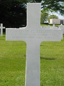Pvt Oliver Sellers attended high school for 3 years and was a laboratory technician. He enlisted in Greensburg, Pennsylvania on 11 June 1943.He died from a penetrating wound in the abdomen.