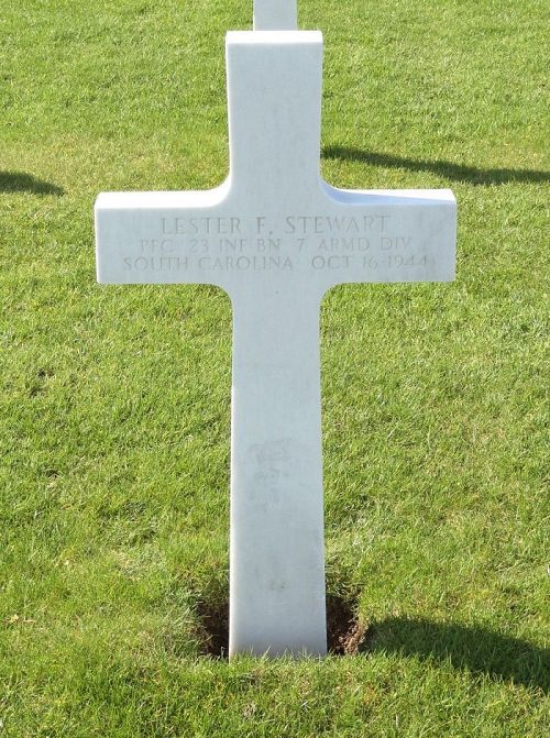 Pfc Lester F. Stewart enlisted at Fort McPherson Atlanta, Georgia on 27 February 1941.He had been overseas four months.