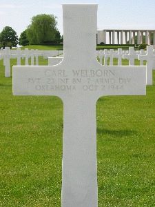 Pvt Carl Welborn was wounded 3 miles east of Sambeek, the Netherlands on 1 October 1944.Source of information: Peter Schouteten, Carla Mans, www.wwiimemorial.com, www.ancestry.com - 1930/1940 Census / U.S. WWII Draft Cards Young Men, www.7tharmddiv.org