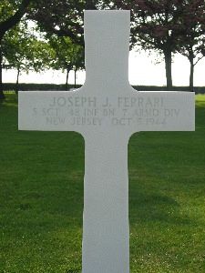 S/Sgt Joseph J. Ferrari enlisted at Fort Dix, New Jersey on 12 March 1942.He received training at Camp Polk, La., Fort Benning, Ga., and was on maneuvers in California before going overseas. He was missing in action since October 3, the day before his 34th birthday anniversary. He was awarded the Silver Star for gallantry in action on October 2, 1944. He attended Plains Memorial High School.