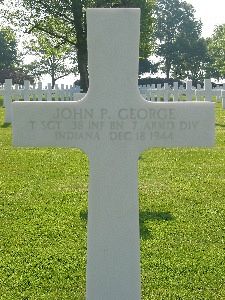 T/Sgt John P. George enlisted on 26 March 1943 and was sent overseas in August 1944.Source of information: Peter Schouteten, Terry Hirsch, Hannah Majewski - James Woodiel, www.wwiimemorial.com, www.archives.gov, http://www.7tharmddiv.org/index.htm, WWII Draft Cards