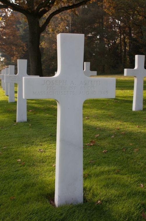 Pfc Joseph A. Astuti enlisted in Boston, Massachusetts on 3 September 1943.Source of information: Peter Schouteten, www.abmc.gov, www.wwiimemorial.com, www.archives.gov – WWII Enlistment Record, www.ancestry.com - Headstone and Interment Record / U.S., Social Security Applications and Claims Index / 1930/1940 Census, http://83rdinfdivdocs.org